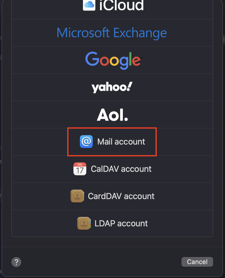 Select "Mail Account"