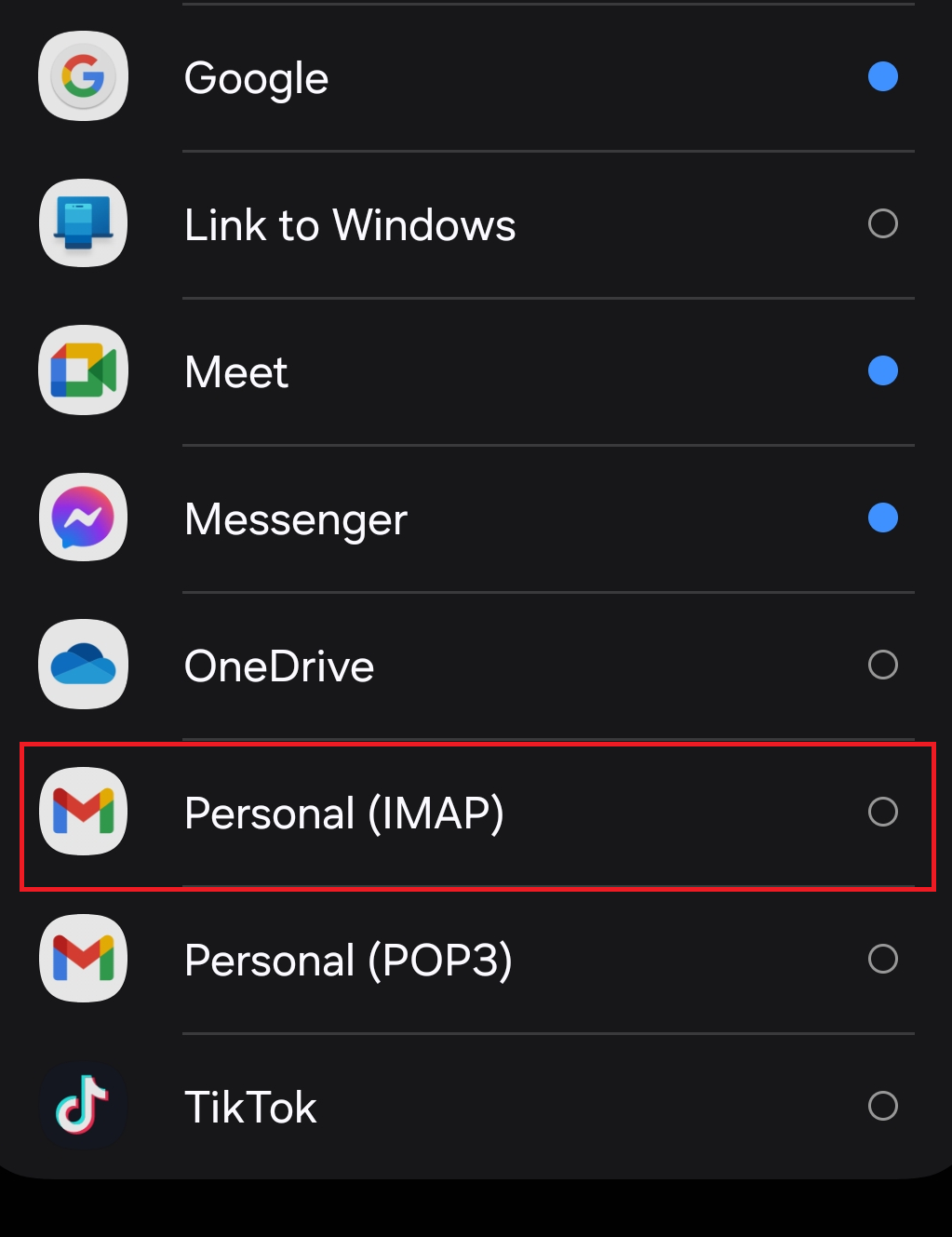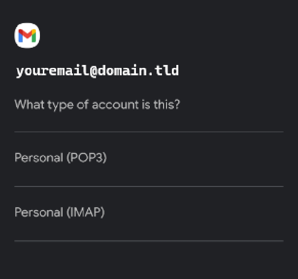 "Personal (IMAP)" or "Personal (POP3)"