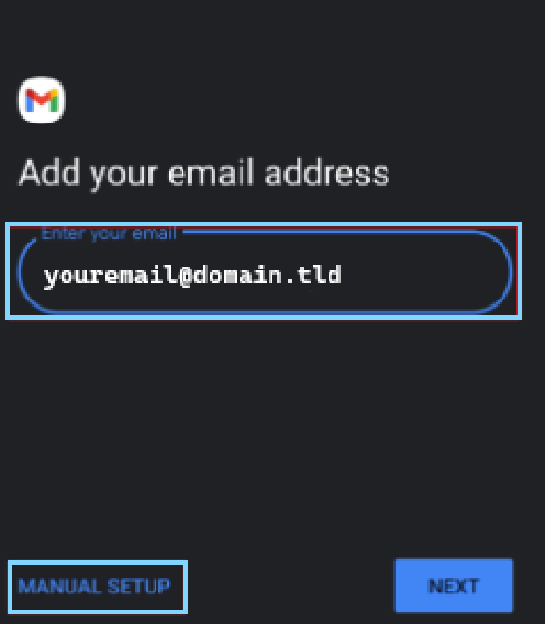 In the following screen, enter your email address and select the option for "Manual SETUP"