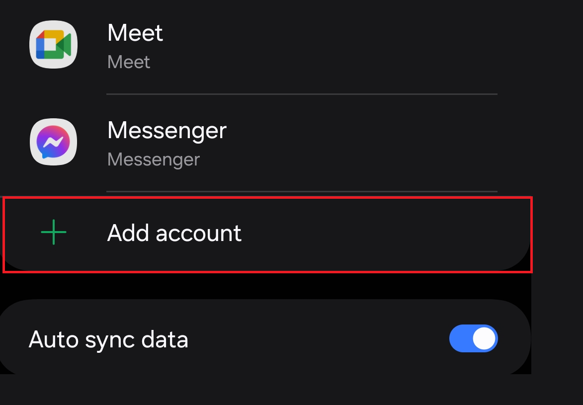 Choose the "Add account" option at the bottom of the list