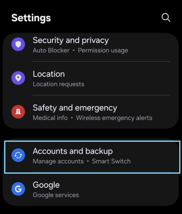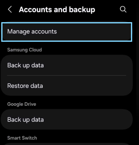 select "Accounts and backup"