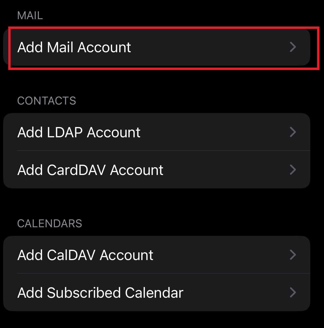 Select "Mail Accounts"