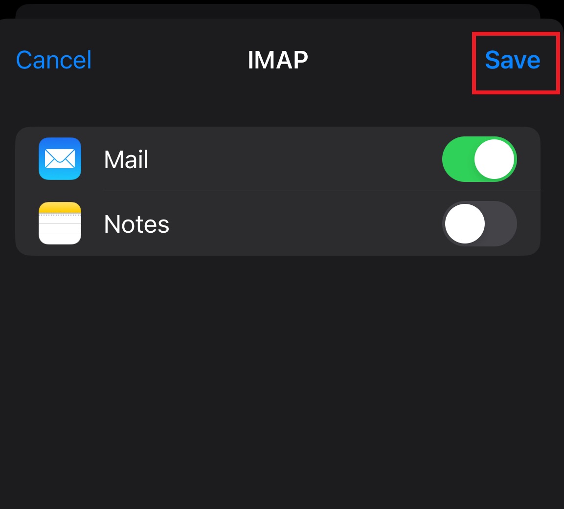 Once entered have the customer make sure the "Mail" option is enabled and click on save the device should now attempt to verify the settings that have been entered if verified the account should be good to go from this point.