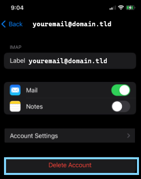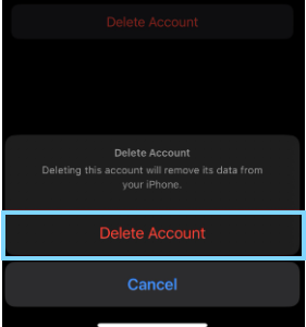Tap on Delete Account to confirm and remove the account from the device.