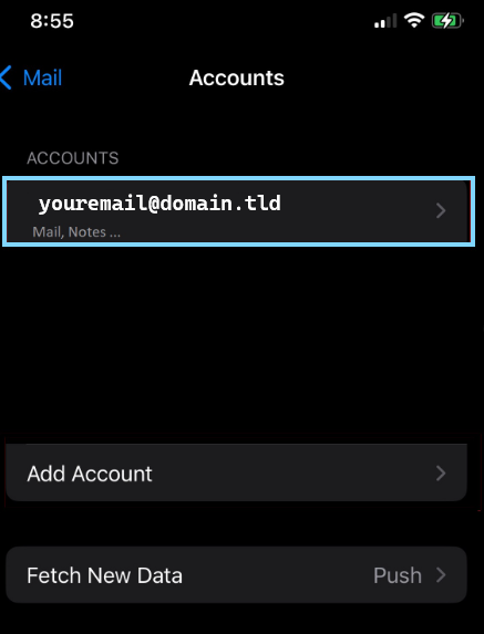 To add a new account to the Iphones default mail client ( Apple Mail ) have the customer optn settings and locate "Mail"