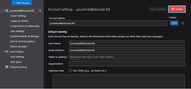 Click on "Remove" to fully remove the profile from your thunderbird installation