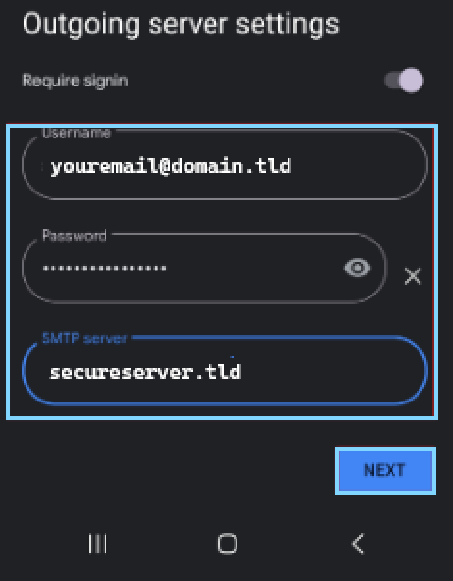 In the final screen you can assign an account name and your name to the email account, click on Next and you are ready to use your domain based email within your Gmail App.