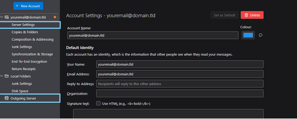 After making the nessesary edits confirming that the server settings match what has been provided by your email host, ensure the server is set as your default by selecting the server and clicking the "Set as Default option "